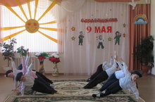 Бүген уртанчылар, зурлар, мәктәпкә әзерлек төркеме балалары музыка җитәкчеләре Аухадиева Нурания Әюповна, Валиева Диләрә Илдусовна җитәкчелегендә "9 май - Бөек Җиңү көне" исеме астында бәйрәм иртәсе уздырдылар. Бәйрәмдә балалар Бөек Җиңү көненә багышланган шигырьләр, җырлар, биюләр башкардылар. Сугыш кырында ятып калган батырларны минутлык тынлык белән искә алдылар.
