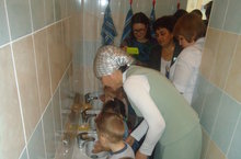 Культура-гигиена күнекмәләре тәрбияләү 04.12.2015 Балаларны пөхтәлеккә, тышкы кыяфәтләрен тәртиптә тотарга күнектерү. Кулларны, битне, колакларны мөстәкыйль рәвештә чиста итеп юарга, сабыннан дөрес файдаланырга; юганнан соң коры итеп сөртенергә, сөлгене урынына элеп куюны ныгыту максатыннан икенче кечкенәләр төркмендә тәрбияче Фатихова Гүзәл Хәмзевна тәрбиячеләр алдында ачык эшчәнлек күрсәтте. Балалар кунакка килгән Алсуны чиста итеп юынырга, сабын, сөлгедән ничек файдаланырга кирәклегенә өйрәттеләр.