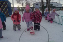 Балаларны саф һавага алып чыккач хәрәкәт активлыгын үстерү буенча күп кырлы эш алып барыла. Хәрәкәтле, спорт уеннары, ярышлар, эстафеталар үткәрелә. Икенче кечкенәләр төркеме балалары белән Нурания Әюповна "Капкага тупны керт", "Самолетлар", "Ябалак һәм кошлар" уеннарын уйнатты. Уеннар барышында балалар тупны төз атуда, җитезлектә көч сынаштылар, игътибарлылык, сигнал буенча хәрәкәт итү күнекмәләре ныгытылды.
