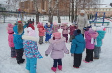 Икенче кечкенәләр төркеме балалары тәрбияче Фатихова Гүзәл Хәмзевна һәм физик тәрбия бирүче тәрбияче Аухадиева Нурания Әюповна белән берлектә саф һавада физик активлыкны үстерүче уеннар ярдәмендә балаларның сәламәтлеген үстерү, ныгыту буенча даими эш алып баралар. Саф һавада булу, хәрәкәтле уеннар уйнау балаларның йөрәк-кан тамырларының, сулыш, мускул һәм организмының бөтен мөһим булган системаларын ныгыта.