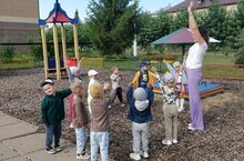 Утро начинается с зарядки! Каждое утро в нашем детском саду начинается с зарядки, которая позволяет укреплять здоровье детей. Зарядка для детей на улице – это прекрасный способ взбодриться, насытить организм кислородом и снабдить энергией. Зарядка помогает ребёнку быстрее избавиться от утренней сонливости, обеспечивает прилив энергии и бодрости.