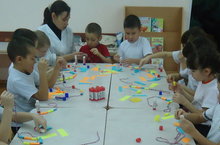 Мәктәпкә әзерлек төркеме балалары белән тәрбияче Сабирова Рәхилә Расиховна кәгазьне бертигез киңлектәге тасмаларга кисеп, бөтереп мәрҗән ясый белеүне ныгыту; вак кул чукларының эшчәнлеген күнектерү; мөстәкыйльлелек, пөхтәлек тәрбияләү максатыннан “Әниемә бүләк” темасына бердәм эшчәнлек үткәрде. Балалар эшкә кызыксынып алындылар, һәркайсы әнисенә бүләкне матур итеп эшләргә тырышты.