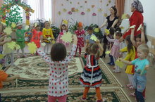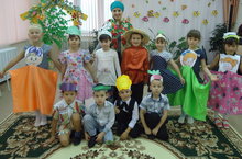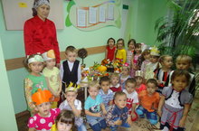 Мы к осеннему празднику, как и пологается, готовились основательно: проводились беседы, экскурсии и т.д. Учитывая все цели осеннего праздника, в этом году подготовительной и старшей группы сценарий праздника была направлена на формирование интонационной стороны речи и дифференциацию эмоциональных состояний радости, грусти, злости, испуга и удивления. Ребята подготовительной группы вместе с воспитателем русского языка Вафиной Л.И. подготовили театрализованный праздник на русском языке «Что за чудо огород!» используя мимические, пантомимические средства и приемы, показывая умения согласовывать мысли, чувства, действия. Ребята помогали садоводу найти семена, собрать осенний урожай, наполнить лукошко овощами и т.д. По ходу праздника дети старшей группы под руководством муз.руководителя Яхиной Г.И. пели хороводы, отгадывали загадки, «варили» суп и компот, в танце «Под зонтиками» старались показать настроение осеннего дождя.