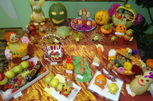 Фантазиям наших мастеров-родителей нет предела. В этом мы убедились увидев обилие поделок из овощей, таких разных и удивительно красивых, смешных, позитивных. Все, кто трудился вместе со своим ребенком старались создать композицию и очень творчески подошли к этому процессу, а это самое главное. Ведь совместная работа ребенка и родителя способствует развитию активности и творческих способностей ребенка. Как правило, предлагая вниманию ребенка алгоритм действий и разнообразие материалов, мама или папа может сподвигнуть его на личные решения в процессе создания поделки. А совместно изготовленная поделка будет уникальным изделием, так как будет выполнена именно семьей. Спасибо нашим родителям за труд и желаем в дальнейшем получить радость от совместного с ребенком творчества! Жаль, что вся красота и богатство выставки не умещается в один кадр)...