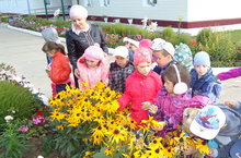 Наступила осень. Солнце греет ещё почти по-летнему, стремясь отдать последнее нерастраченное тепло. На голубом и чистом небе ещё почти нет туч. Только ветер стал более холодным и резким, напоминая о том, что на дворе уже сентябрь месяц. Среди яркой зелени уже заметны первые предвестники осени: жёлтые и красные листья. Скоро они опадут с деревьев и покроют собой все дороги и дорожки. Об осени часто говорят художник-осень. Всего за несколько дней осень: "перекрашивает" пейзаж. Раньше лес был зеленым, но пришла осень и изменила зеленый на множество цветов и оттенков. И еще много – много интересного дети узнают об осени, наблюдая за нашим участком детского сада. Сегодня, воспитатель по обучению русскому языку Вафина Л.И. и воспитатель Сафиуллина А.К. с детьми подготовительной группы провели наблюдение цветников и огорода на территории детского сада, беседуя на русском языке. Так как, каждый вторник недели у нас день русского языка. Мы – воспитатели на протяжении всего дня стараемся общаться с детьми на втором государственном языке. Воспитатели рассказывали о великолепии и красоте осеннего сада, о богатстве урожая, об изменениях и игры цвета зелени, что является необходмым аспектом в художественно - эстетическом воспитании детей.