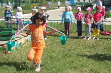 "Һәрвакыт булсын кояш" 06.06.2014 6 июнь көнне бакчабызда уртанчылар, зурлар, мәктәпкә әзерлек төркеме балалары катнашынды музыка җитәкчесе Мустафина Дилбәр Фатыйховна, тәрбиячеләр Шакирзянова Кадрия Рафаеловна, Абдуллина Наилә Гараевна, Сабирова Рәхилә Расиховналар белән берлектә 1 июнь балаларны яклау көне, ямьле җәй җитү уңаеннан “Һәрвакыт булсын кояш” темасы астында бәйрәм чарасы үткәрелде. Бәйрәм уеннар, җыр, бию, шигырь сөйләү, әйлән-бәйлән белән үрелеп барды. Асфальта җәйнең матур мизгелләрен, яраткан әкият геройларын рәсемләү белән тәмамланды бәйрәм.