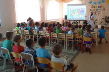 Балалар бакчаларында эшчәнлек бу атнада юл йөрү кагыйдәләренә, аларны тагын бер кат искә төшереп, белгәннәрне ныгытуга багышланды. "Шатлык" балалар бакчасы үзенең атналык эшен бик тәфсилләп төзеде. Иң элек әңгәмәләр үткәрелде, "Юл йөрү кагыйдәсен беләсеңме?", "Юл билгеләре иленә сәяхәт" кебек викториналар оештырылды. Әлеге теманы өйрәнүдә бакчабызда оештырылган ПДД га багышланган махсус бәлмә ярдәмгә килә. Анда стендлар, макетлар, әсбаплар кулланып балалрга һәрдаим юл йөрү кагыйдәләре өйрәтелеп һәм ныгытылып барыла. Бүген исә, бакча биләмәсендәге юл йөрү мәйданчыгында уртанчылар,зурлар һәм мәктәпкә әзерлек төркеме балалары белән белемнәр практик яктан өйрәнелеп, тагын бер кат искә төшерелде. Балалар үзләре юл билгеләренә таянып юлны төрле транспорт чаралары белән чыктылар. Әлеге чараларның максаты бик җитди: балаларны юл билгеләрен аера белүне, юлда хәвефсезлек кагыйдәләрен өйрәтүне дәвам итү; юлларда күзәтүчәнлекне, игътибарлыкны, мөстәкыйль фикерләүне үстерү; урамда, җәмәгать транспортында, торак зоналарда үз-үзеңне тоту мәдәниятен тәрбияләү. Шул ук вакытта балаларны коры җир, су һәм һава транспорт чараларын аера белергә, аларны чагыштырырга, һәр төр транспорт турында күзаллауларын өйрәтүне дәвам итү әмиятле булып кала. Атна ахырында балалар белән юлны күзәтеп ял паркына экскурсиягә бару планлаштырыла.