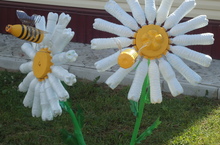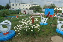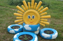 Быел безнең коллектив җәйгә яңа сулыш алып керде. Бертөрлелектән арып без җыелышып төрле-төрле, балалар күңеленә якын булган фигуралар ясарга керештек. Җиһазлар бик гади булса да ( мәсәлән су шешәләре, тәгәрмәч) алардан бик матур, үзенчәлекле геройлар барлыкка килә башлады. Бу чара барыбызны да сихерләгән кебек бакча хезмәткәрләренең өйдәгеләрен дә мавыктырды. Иң беренче булып ромашка чәчәкләре аллеясы барлыкка килде. Аларга инде бал кортлары да ияләште