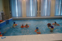 Балаларның сәламәтлеген кайгырту кече яшьтән үк башлана. Безнең бакчаның зурлар төркеме балалары бассейнга баруны бик теләп һәм көтеп алалар, бер атнаны да бу чарадан калмаска тырышалар. Бу спорт төре белән шөгыльләнүнең нәтиҗәсе дә бар, бассейнга йөри башлаганнан бирле балалар чыныгып киттелләр, һәркөн өйреш тулысынча. Биредә балалар белән тренер Насибуллина Гульнара Рифатовна эшли, ул аларны йөзәргә, суда төрле хәрәкәтләр, күнегүләр ясарга өйрәтә, суда уйнау элементлары белән таныштыра.