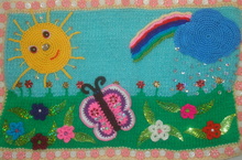 Әти-әниләребезнең бакча тормышы белән кызыксынып торулары күңелләребезгә тагы да рух өсти. Бу юлы да "Оста куллы әниләр" бәйгесенә алар битараф калмады. Бәйрәм алды мәшәкатьләре дип тормыйча, кайбер гүзәл затлар үзләренең кул җылысы белән эшләнгән матур әйберләрен алып килә башладылар. Мәсәлән, бу фотода әни- Алсу Хасаншина эше. Ул яз, җәй темасына панно бәйләп алып килгән. Әниләребезгә бик зур рәхмәт юллыйбыз, чын күңелдән гаилә бәхете телибез!