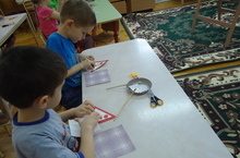 Бердәм эшчәнлек барышында балалар юл билгеләрен өйрәнделәр, аппликация ысулы белән светофорлар, юл билгеләре, җәяүлеләр һәм машиналар сурәтләп рәсемнәр ясадылар. Мәсәлән, уртанчылар төркеме балалары ике юл кисешкән урын макетын җыйдылар.