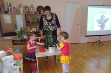 Тәрбияче Абдуллина Наилә Гараевна 2нче кечкенәләр төркемендә балаларның бердәм эшчәнлеген "Минем дусларым-бүлмә гөлләре" темасы астында үткәрде. Максаты: Балаларга бүлмәдә үскән гөлләр турында төшенчә бирү, исемнәрен атый белергә өйрәтү, яфраклары, сабагы, тамыры, чәчәге барлыгын, гөлгә үсәр өчен су, яктылык, җылылык, туфракны ашлау кирәклеген аңлату. Тышкы кыяфәтләренә карап гөлләрне аера белергә, рәсемнәргә карап танырга, бүлмә гөлләре өчен шартлар тудыру турында мәгълүмат бирү