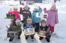 Кошларга җимлек кую бакчабыз эшчәнлегендә матур традиция. Ел саен, январь азагында, февраль башында бакчабызда тәрбияләнүче балалар, аларның әти-әниләре ярдәме белән кошларга җимлекләр ясала. Быел да, әлеге күмәк чара алгы планга куелып, һәр төркем балалары өйдә, әти-әнисе белән ясаган җимлекләрне бакчага алып килделәр. Җимлекләрдән матур гына күргәзмә оешты. Соңрак кайбер җимлекләрне балалар тәрбияче апалары белән бакча биләмәсендәге агачларга элделәр. Озак та үтмәде алар җимлеккә килеп кунган песнәкләрне “сөенеп” азыкларны чупли башлавын күреп бик куандылар.