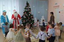 Новый Год - это самый волшебный, веселый праздник, которого дети ждут, веря в сказку и чудо. 24 декабря в нашем детском саду прошли новогодние утренники. Красиво украшенный зал, нарядная елка, подарки, Дед Мороз и Снегурочка, Леший и Баба Яга, Медвежонок, Зайчонок и множество других сказочных персонажей ожидали детей дошкольного учреждения. Ребята погрузились в мир чудес, приключений, невероятных превращений и сюрпризов. Дошколята танцевали, пели песни, читали стихотворения, водили хороводы, с удовольствием участвовали в играх и конкурсах. Дети получили массу положительных эмоций и долгожданные подарки из рук Деда Мороза.