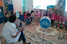 Цель:Учить детей познавать знаки дорожного движения.( Воспитатель Курбанова Н.Х.)