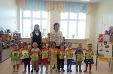 Бүген 1-нче кечкенәләр төркемендә тәрбияләнүче балалар белән юл йөрү кагыйдәләрен ныгыту максатыннан ачык эшчәнлек күрсәтелде. Балалар транспорт йөри торган юлда уйнап йөргән куянга светофорның, юл билгеләренең ни өчен кирәклеген, юл йөрү кагыйдәләрен аңлаттылар. "Нәрсә юкка чыкты?", "Светофор сигналлары", "Машиналарны гаражга керт" уеннары аша светофор, транспорт төрләре турында белемнәрен ныгыттылар.