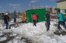 Елдагыча, май бәйрәмнәре алдыннан, безнең балалар бакчасында өмәләр булып уза. Экологик айлык кысаларында бүген коллектив белән бакча тирәсендәге карны таратырга чыктык.