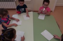 Бүген икенче кечкенәләр төркеме балалары янына кунакка куян балалары килде. Балалар куяннарны түгәрәк һәм өчпочмак белән таныштырдылар, төрле предметларның төркем тигзлеген урнаштырырга өйрәттеләр, предметларның саны аларның размерына бәйле булмавын аңлаттылар. Ахырдан куян балалары өчен матур өй төзеп бүләк иттеләр. (Сайфутдинова Г.З.).