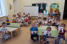 Икенче кечкенәләр төркеме балалары кисеп ябыштыру шөгелен бик яраталар. Бүген алар үзләре яратып уйнаган пирамида уенчыгын ясарга өйрәнделәр. Матур килеп чыккан эшләре буенча бер-берсе белән фикер алышып, өйгә кайткач әниләргә дә ясап күрсәтәбез дип сөенеште балалар. (Сайфутдинова Г.З.).