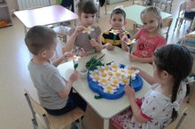 Зурлар төркемендә балалар үз куллары белән әниләренә бүләккә “Ромашка чәчәкләре” кул эшләнмәсе ясадылар.