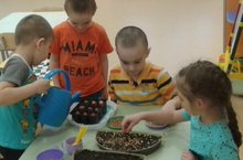 Балалар белән зурлар төркемендә февраль аенда суган белән борчак – бодай утыртып күзәтү эшләрен башладык.Бу эш балаларда кызыксынучанлык уятты.Чөнки алар барсыда үз куллары белән үзләре эшләделәр,утырттылар, су сиптеләр.