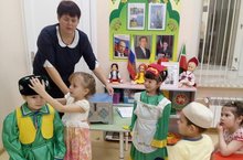 Халкыбызның гореф-гадәтләрен, буыннан-буынга истәлек булып калган йолаларны хәтерләрендә калдыру, җыр-биюләр һәм уеннар аша балаларны татар халкының үткәне белән таныштыру максатыннан зурлар төркемендә “Әбиемнең серле сандыгы” дип исемләнгән шигъри йомгаклау чарасы үтте. Балалар “Яулык салыш” , “Капкалы”, ”Түбәтәй “ уеннарын күңелле итеп уйнадылар. Әбиебезнең сандыгы чыннан да серле икән бит! Аны ачкан саен балалар үзләре өчен бик күп яңалык белә алдылар Өлкәннәргә карата хөрмәт тәрбияләү, халкыбызның тарихына кызыксыну уяту, җырлы-биюле уеннарына мәхәббәт тәрбияләү, гореф-гадәтләребезне, милли йолаларыбызны, мәкаль –әйтемнәребезне кабат искә төшерү балалар өчен тәрбияви яктан бик әһәмиятле булды (Тәрбияче: Солтанова Г.Г)