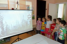 Зурлар төркемендә балалар су асты дөньясын презентация аша күзәтеп ,әңгәмәдән соң аквариумдагы балыклар тормышын ,кисеп ябыштыру шөгылендә күрсәтә алдылар.Балалар балыкларның исемнәре төзелеш–формалары,төсләре ,яшәү шартлары,тукланулары белән кызыксындылар.Балык тоту уенында аквариум балыкларын исемнәрен дөрес әйтеп кармакка эләктерделәр. Балаларда экологик тәрбиягә карата уңай караш тәрбияләнде. (Тәрбияче: Солтанова Г.Г.)