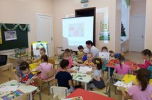 В нашем детском саду регулярно дети занимаются изучением английского языка. Дети учавствуют в роли персонажей, слушают и поют песни, занимаются зарядкой и играют в подвижные игры. Занятия проходят очень динамично. Дети не успевают соскучиться, за короткий срок осваивают новый материал, и самое главное - у них появляется желание прийти ещё на занятие.