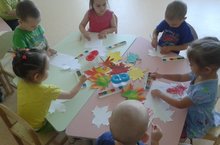 Максат: Балаларны гуашь белән таныштыру ,пумала белән дөрес эшләргә өйрәтү; төп төсләр буенча белемнәрне ныгыту , яңа төсләр һәм төсмерләр белән таныштыру; балаларны кәгазь кырыеннан чыгармыйча буярга өйрәтү, өрәңге яфракларын башкалардан аерырга өйрәтү; рәсем ясаүга уңай мөнәсәбәт һәм кызыксыну тәрбияләү. 1-нче кечкенәләр төркеме (Тәрбиячесе Н.Х.Корбанова)