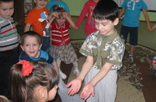 Балаларның хокуклары турындагы белемнәрен киңәйтү, аларда әхлакый сыйфатлар, әти-әнигә хөрмәт тәрбияләү, балаларның гаиләдәге хокуклары турындагы белемнәрен ныгыту, аларның ялга, уенга хокуклы булуларын аңлату, дуслык, әхлаклылык хисләре тәрбияләү максатыннан балалар белән “Минем хокукларым” дигән уен-викторина үткәрелде. Балалар сорауларга , табышмакларга җаваплар эзләделәр, уен уйнадылар, шигырьләр сөйләделәр, таныш әкиятләрдәге геройларның нинди хокуклары бозылганын дөрес итеп әйтә белделәр. Уен-викторина “Ягымлы сүзләр түгәрәге” уены һәм презентация карау белән тәмамланды.