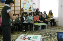 Килгән кунакларны балаларның каршылаулары.Семинар бишек җыры белән башланып китте. Балалар үзләренең гаиләләре, балалар бакчасы, Туган ил турында шигырьләр сөйләделәр.