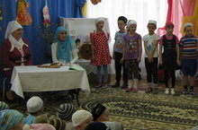 “Корбан бәйрәме Ураза бәйрәменнән соң 70 көн үткәч уздырыла. Ислам динендә Корбан чалу Ибраһим пыйгамбәр Җәбраил фәрештәдән “кара таш”ны алгач, үзенең Аллаһыга бирелгәнлеген күрсәтү өчен улы Исмәгыйльне корбан итмәкче була. Ләкин шәфкатьле Аллаһы, Ибраһимга фәрештә аша бәрән җибәреп, аның улын коткара. Менә шуннан бирле һәр дини кеше һәр мөселман бу бәйрәмне зурлап билгеләп утә.” – дип сөйләде Әлфия апа. Ул балаларга вәгазь укыды. Бәйрәм барышында балалар да догалар укып күрсәттеләр. Бу кичәдә мөдир Мөхәрләмова Әлфия Шамил кызы да балаларга үгет-нәсихәт, әдәплелек дәресләре буенча үз тәгъдимнәрен җиткерде.