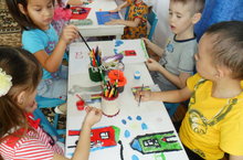 Мәктәпкә әзерлек төркеме балалары гуашь ярдәмендә хыялларындагы йортны рәсемгә төшерделәр.