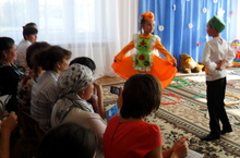 Кунакларны, музыка җитәкчесе Гүзәл Халиуллина өйрәткән, үзләренең осталыклары, җыр – биюләре белән сәламләп балалар каршы алдылар.