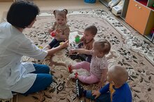 "Бу нәрсә?" дидактик уены аша иң кечкенәләрнең беренче кечкенәләр төркемендә тәрбияләнүчеләр җиләк-җимешләр белән таныштылар, аларның исемен, төсен тәрбияче артыннан кабатлап әйттеләр.