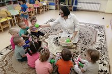 Без бүген беренче кечкенәләр төркеме балалары белән яшелчәләр белән таныштык. Тәрбияче яшелчәнең төсенә, формасына игътибар итәргә куша. Балаларның эйткән сүзләрен тәрбияче балалар белән бергәләп кабатлый.