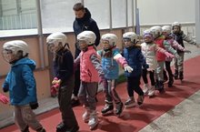 С нового учебного года дети подготовительной к школе группы в понедельник и пятницу с удовольствием ходят в ледовый дворец. В первые дни посещения дети изучали правила безопасного поведения на льду. Закрепили навыки ходьбы, научились стоять на коньках.