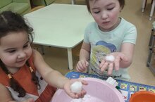 Сегодня дети младшей группы познакомились со свойствами снега. Во время опыта они узнали, что снег холодный, тает в руке, в комнате. Со снегом можно играть, из него можно лепить разные фигуры. В конце занятия они убедились, рассмотрев растаявший снег, что он грязный и его нельзя брать в рот.