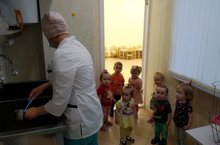 В рамках недели"С днём дошкольного работника!" в первой группе раннего возраста были проведены беседы и наблюдения направленные на формирование первичных представлений и положительного отношения к профессиям воспитателя и младшего воспитателя. Особенно с большим интересом дети наблюдали за работой младшего воспитателя. Дети узнали, что нужно благодарить младшего воспитателя за заботу и поддерживать чистоту, чтобы облегчить её труд.