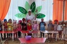 В детском саду прошел необычный мастер-класс. Педагоги поделились с детьми рецептом приготовления фруктового салата. В этот день дети узнали, что витамины необходимы для поддержания здоровья нашего организма. Витамины поступают в наш организм только с пищей. Вот почему овощи и фрукты должны быть в нашем рационе регулярно. В целях закрепления знаний о фруктах, о труде взрослых воспитатели с детьми попробовали себя в роли поваров, и приготовили вкусный, витаминный, фруктовый салат. Дети с удовольствием не только готовили, но и с восторгом съели салат собственного приготовления.