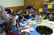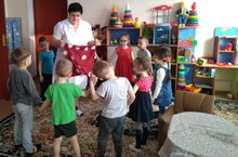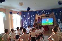 Мәктәпкә әзерлек төркеме балалары, кызыклы уен үткәрер алдыннан разминка ясыйлар.