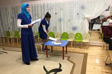 Бүген уртанчылар төркеме балалары, "Әбидә кунакта " дигән темага, бакчабызның тәрбиячеләренә, ачык белем бирү эшчәнлеген күрсәттеләр. Халкыбызның милли киемнәре, бәйрәмнәре турында сөйләйделәр һәм аларны башкарып та күрсәттеләр. "Танграм" уены кулланып алъяпкыч бизәделәр.