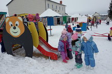 Көн саен белем бирү эшчәнлегеннән соң балалар саф һавада уйнарга яраталар.