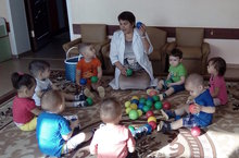 Төрле төстәге шарлар белән ясле төркеме балалары бик теләп уйнадылар. Алар шарларны тәгәрәтеп җибәреп, тотып аларга өйрәнделәр.