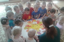 15 май -Гаилә көне уңаеннан ясле төркемендә(тәрбияче Шамсутдинова Л.М.) әти-әниләр белән берлектә, төсле битләрдән әти-әнинең һәм баланың кулларын төшереп, кисеп алып килделәр. Төркемдә балалар тәрбияче белән берлектә гаилә кояшы ясадылар.