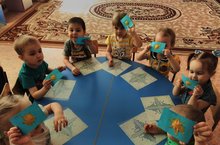 Бүген 1 нче кечкенәләр төркеме балалары тәрбиячеләре Габбасова Л.Р. белән кояшка нурлар ясадылар. Балалар бик сөенделәр.