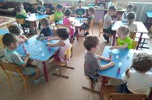 Бүген икенче кечкенәләр төркеме балалары рәсем белем бирү эшчәнлегендә атна темасы уңаеннан (“Кошлар кайта җылы яклардан”) сыерчык оясы ясадылар. “Уңган сыерчык” дигән шигырьне сөйләп шөгыльне тагын да тулыландырдылар.