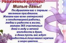 Хөрмәтле 4-нчы номерлы "Кыңгырау" балалар бакчасы коллективы! Сезне чын куңелебездән 8-нче Март-Халык-ара хатын-кыәлар көне белән тәбрик итәбез. Авыр, ләкин мактаулы эшегездә зур уңышлар телибез!
