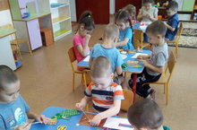 Бүген уртанчылар төркеме балалары тәрбияче Хамидуллина Р.Р. белән иҗади сәнгать эшчәнлеге барышында төрле геометрик фигуралдардан автобуслар кисеп ябыштырдылар.