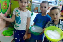 Бүген зурлар төркеме балалары тәрбиячеләре Мөхәммәтшина С.С. белән кайбер әйберләрнең бер халәттән икенче халәткә керүен (кар - суга әйләнә, су - бозга әйләнә) сынап, тәҗрибәлэр үткәрергә өйрәнделәр. Балалар күзәтүчәнлек, фикерләү сәләтен һәм сөйләм телен үстерүне дәвам иттеләр. Күзәтүләр һәм алган белемнәренә таянып, табышмаклар төзергә өйрәнделәр. Тирә-юньдә күргәннәрдән чыгып нәтиҗә ясый белү күнекмәләре тәрбияләнде.